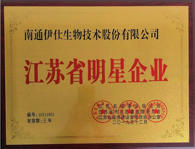 南通伊仕生物技術(shù)股份有限公司榮獲江蘇省明星企業(yè)稱號(hào) |