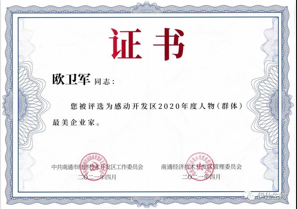歐總是南通市中青年科學(xué)技術(shù)帶頭人,2020年度江蘇省企業(yè)“創(chuàng)新達人”,伊仕生物是南通市新冠肺炎疫情防控重點保障企業(yè)。